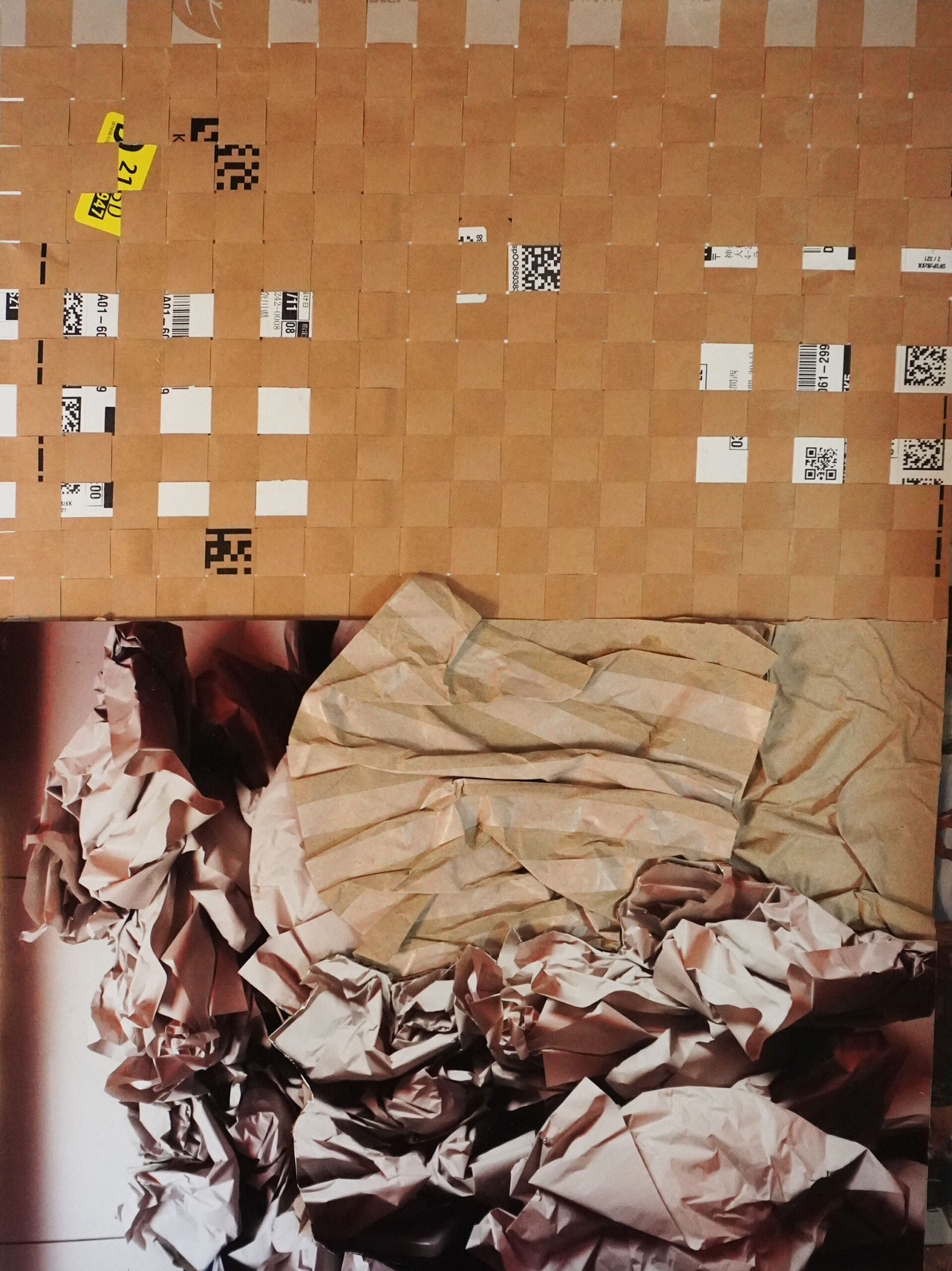 Auto-portrait d’empaquetage, 2025. Gloss paper, 84.1×59.4 cm