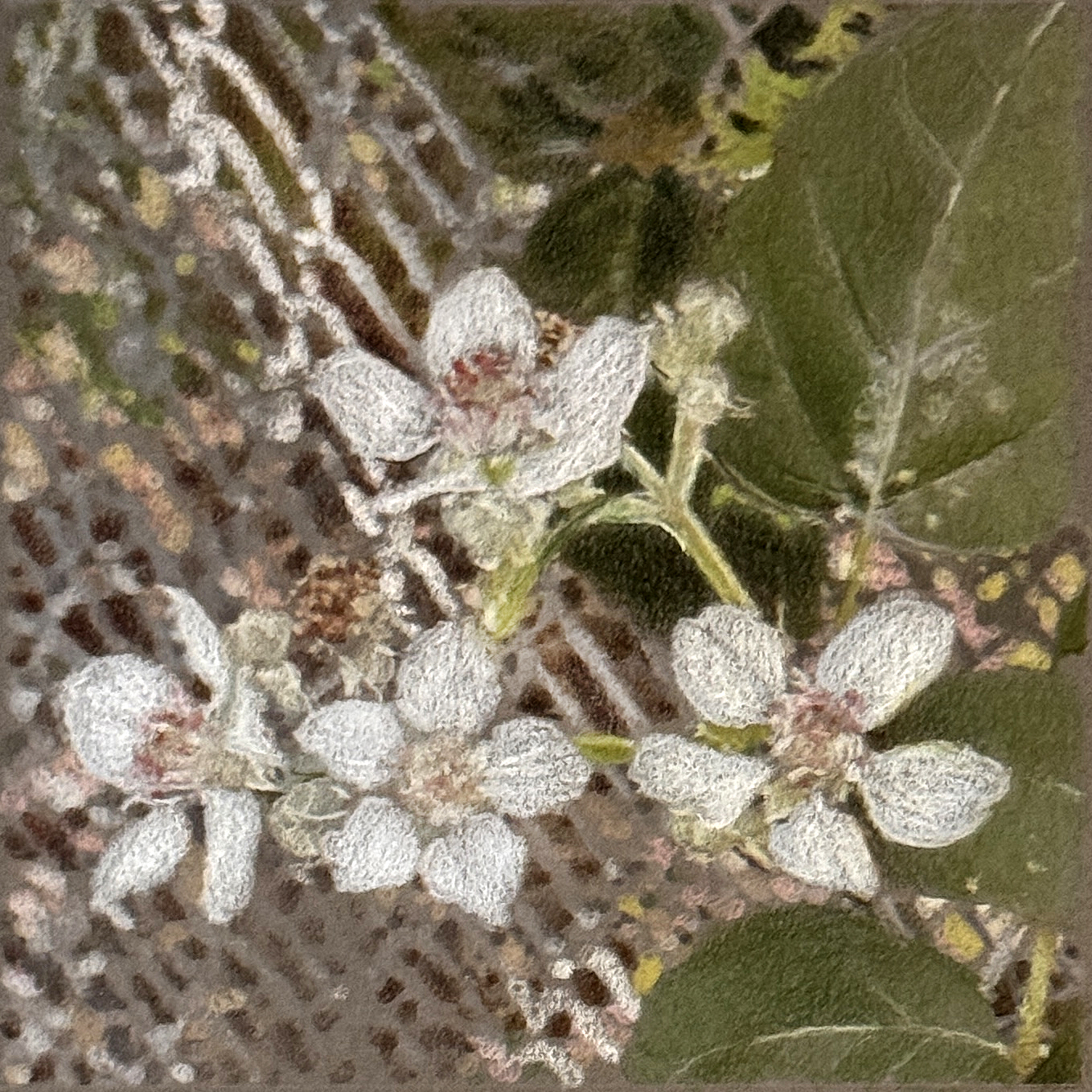 Blackberry No.2, 2025. Colored pencil on grey paper, 6×6 in., $125