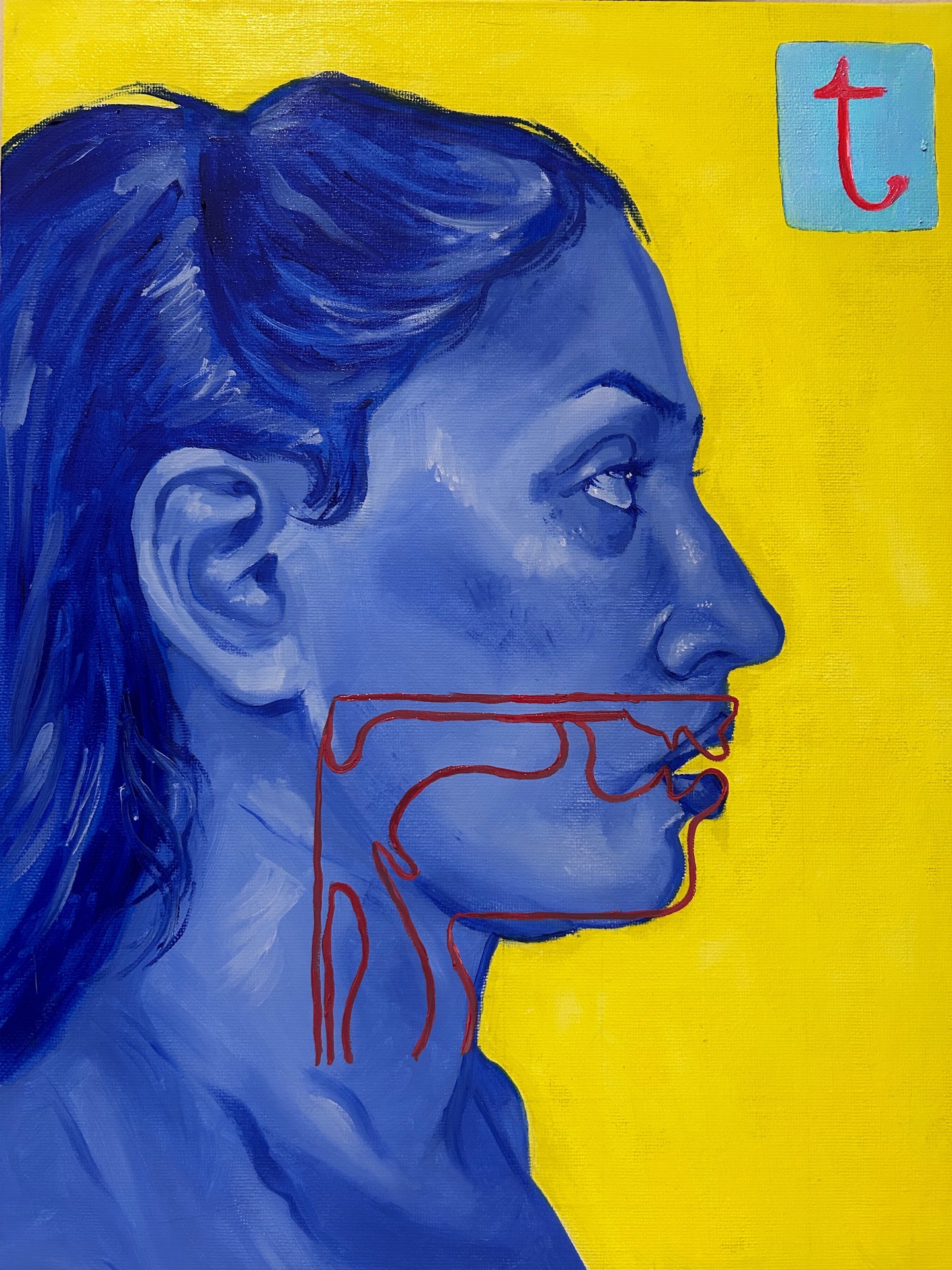 Hidden under my red hat, 2023. Acrylic on canvas, 50×60cm