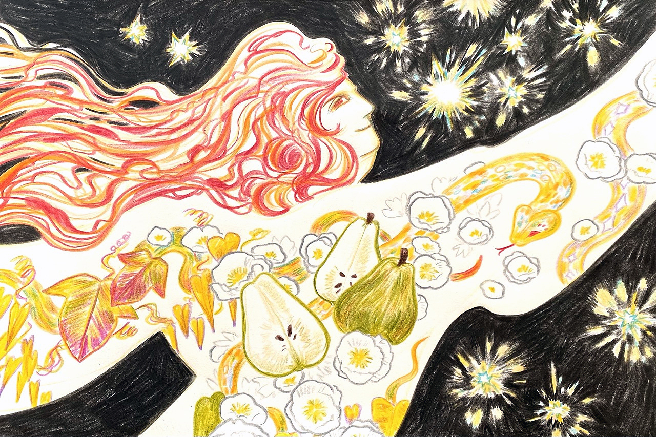 Leonids (You move the stars yourself), 2025. Color pencil on paper, 17.2×25.2 cm