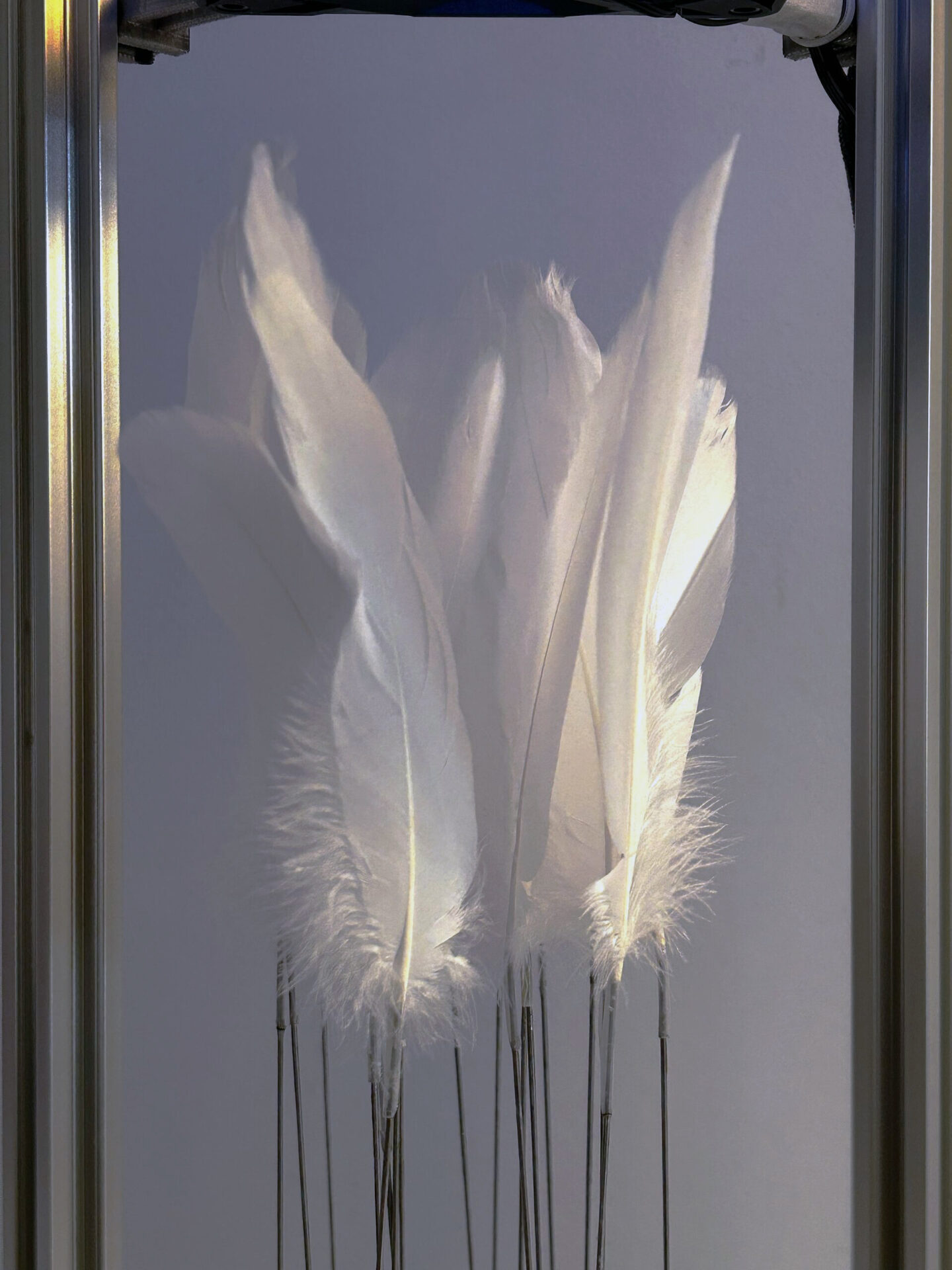 Echoes Toward Tomorrow, 2025. Aluminum extrusion, wood, plastic, fan, 35×25×77 cm