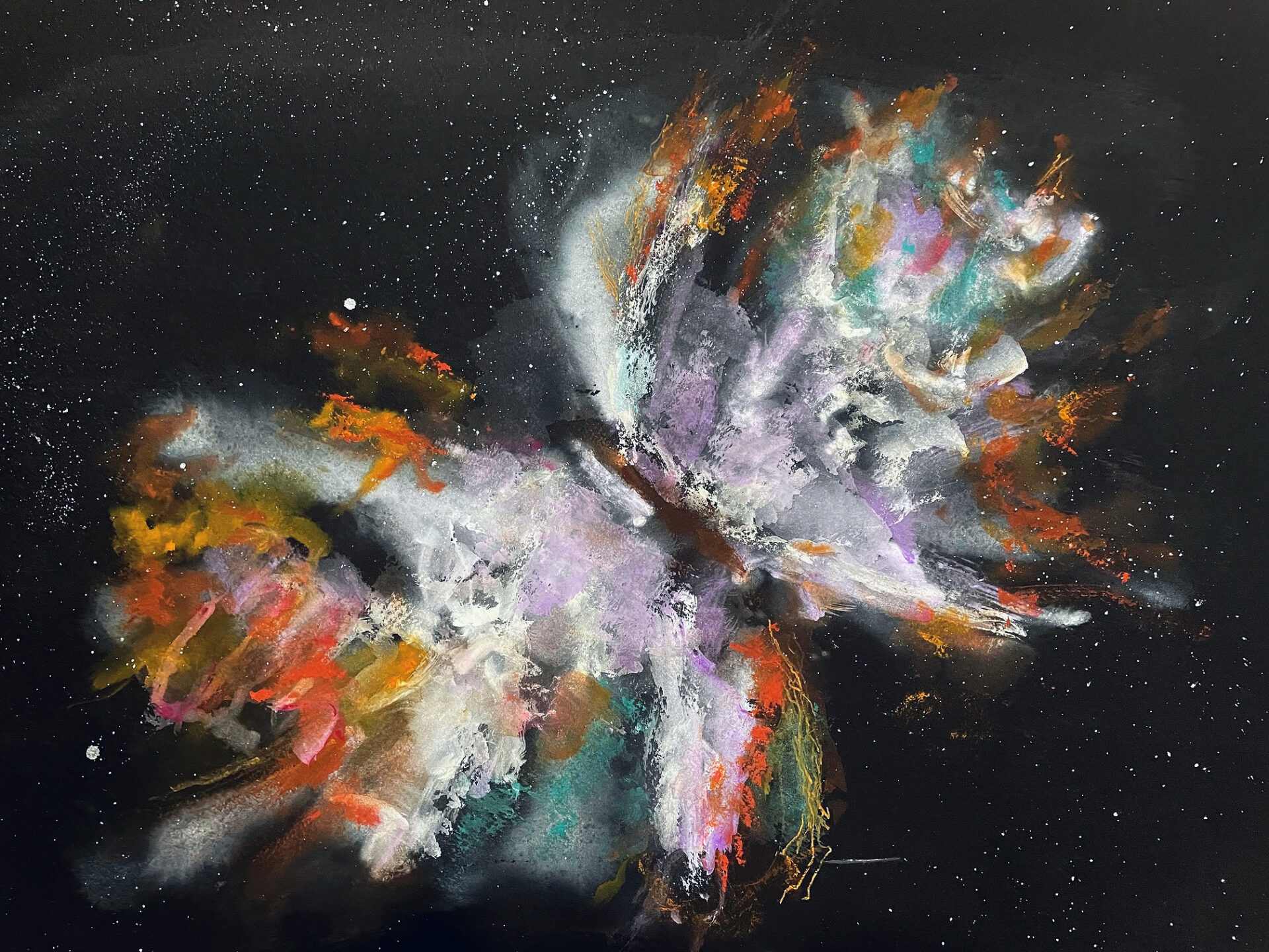 Butterfly Nebula (Dying Star), 2025. Watercolor and gouache, 22×30 in