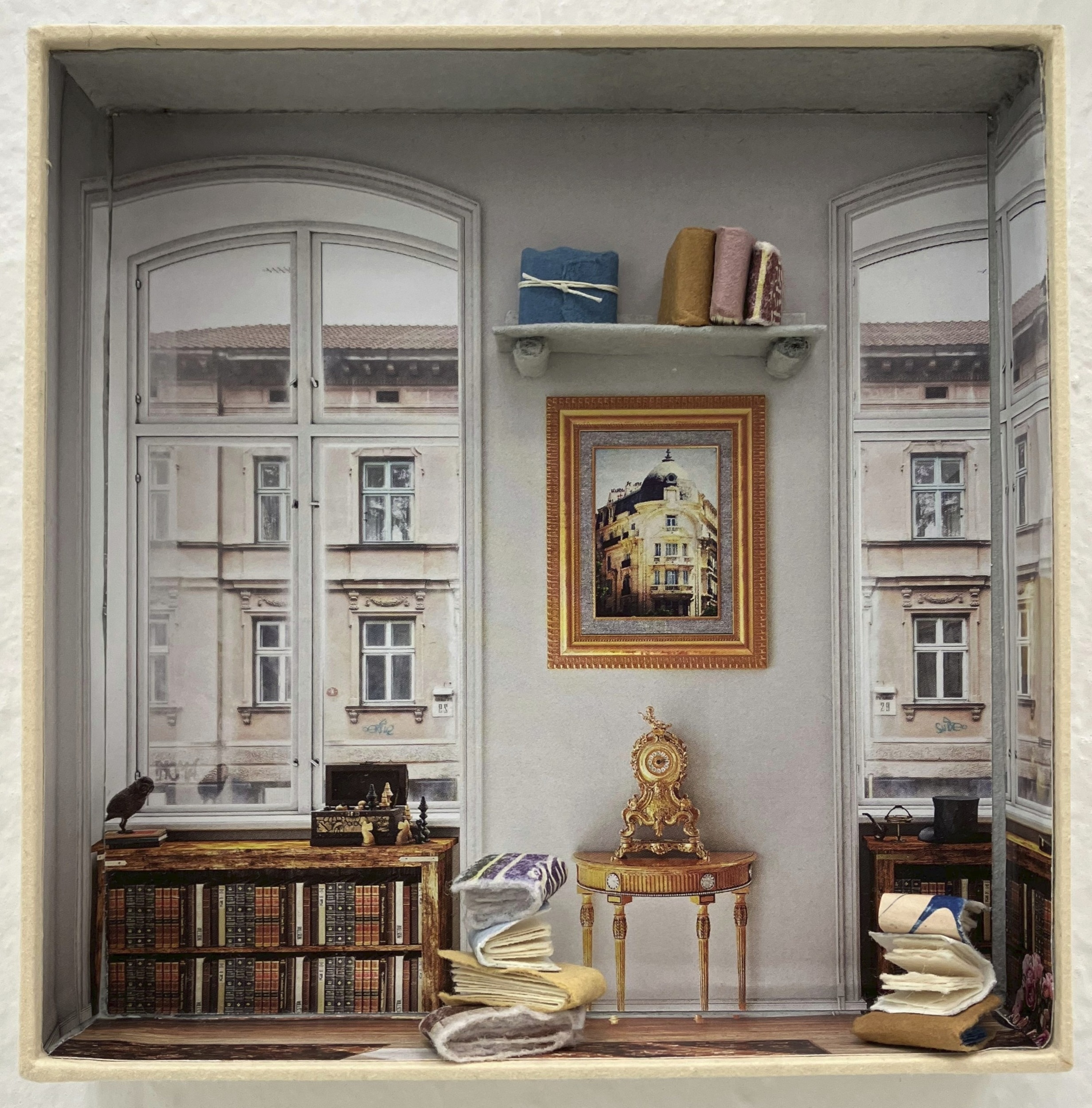For Booklovers Only I, 2025. Acid-free cardboard, handmade & marbled paper, calendar page. 15×15×2.5 cm, €195