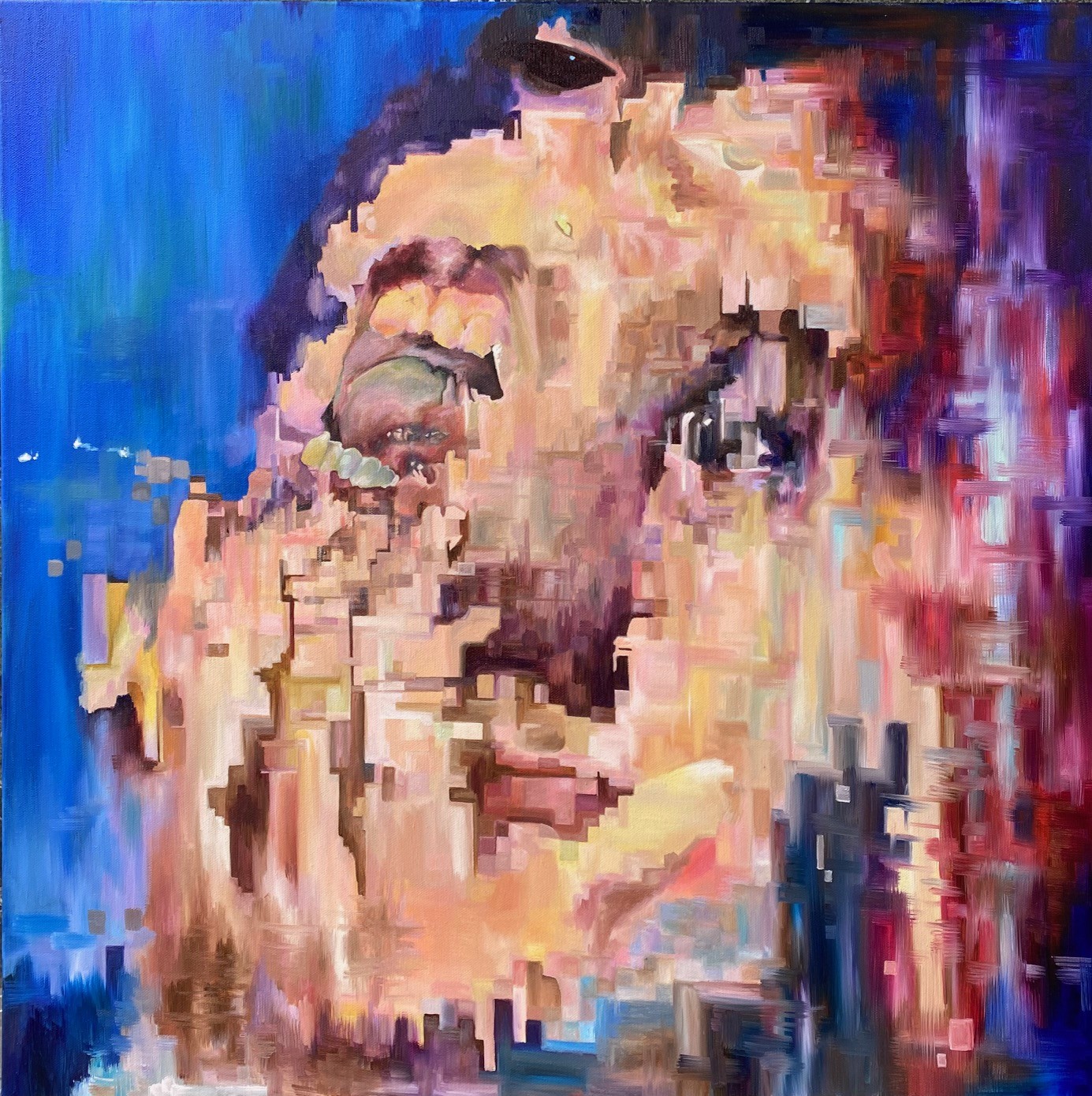 Error Face Not Recognised, 2022. Oil on canvas, 70×70 cm, €2.812,50