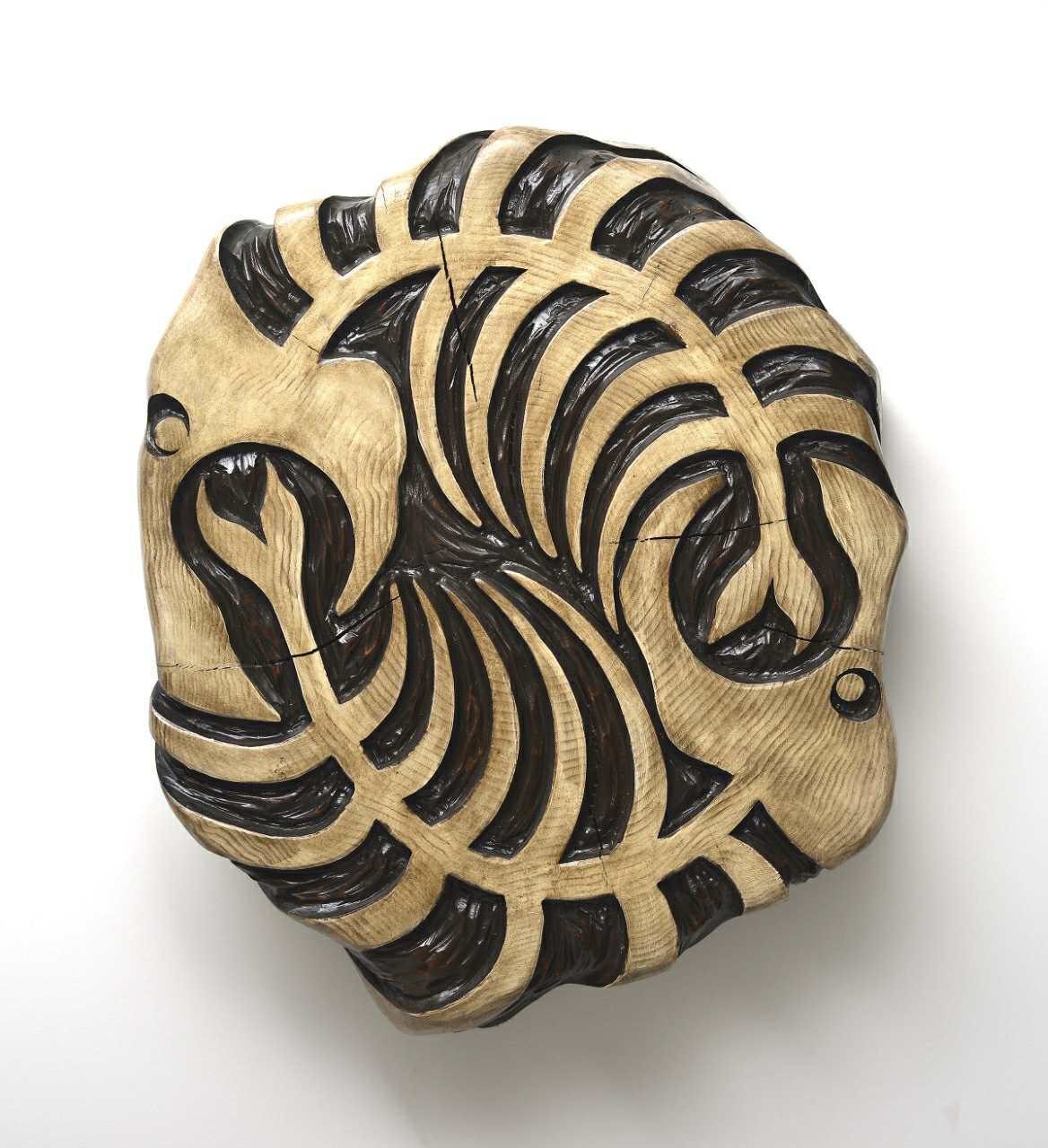 Eat or Be Eaten, 2025. Carved end grain cedar, 22″×20″×5″, $2,400